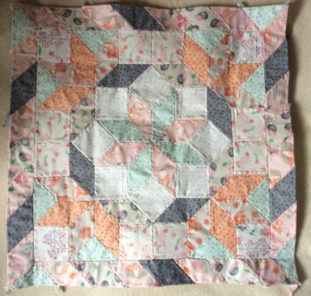 I’m not sure if you remember, but in my post Boxing Day Browse I showed a new project and stated that it might become a small cushion. Well it is going to be a cushion but slightly larger than I first envisaged. Here are some photos – it is not technically finished but the patchwork part is finished.