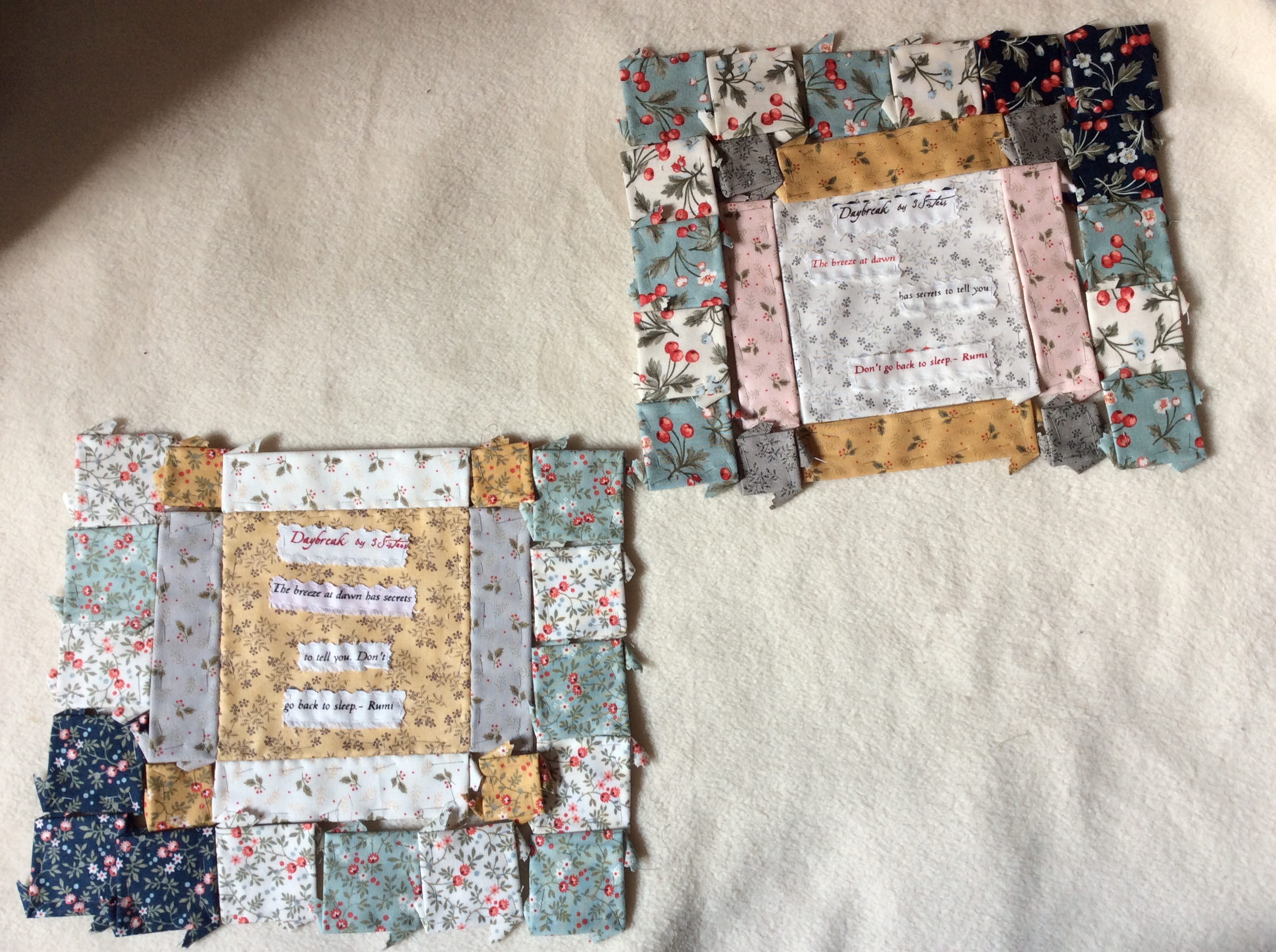 I have used the wording from the edge of the material which says “Daybreak by 3 Sisters – The breeze at dawn has secrets to tell you. Don’t go back to sleep. – Rumi”