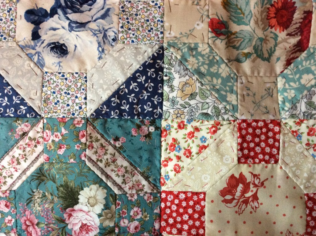 Both of the projects are so beautiful. The Rose Window quilt is so gorgeous. Funny ~ it reminds me of jars of delicious homemade blueberry and strawberry jams 🙂 Your work is lovely 🙂