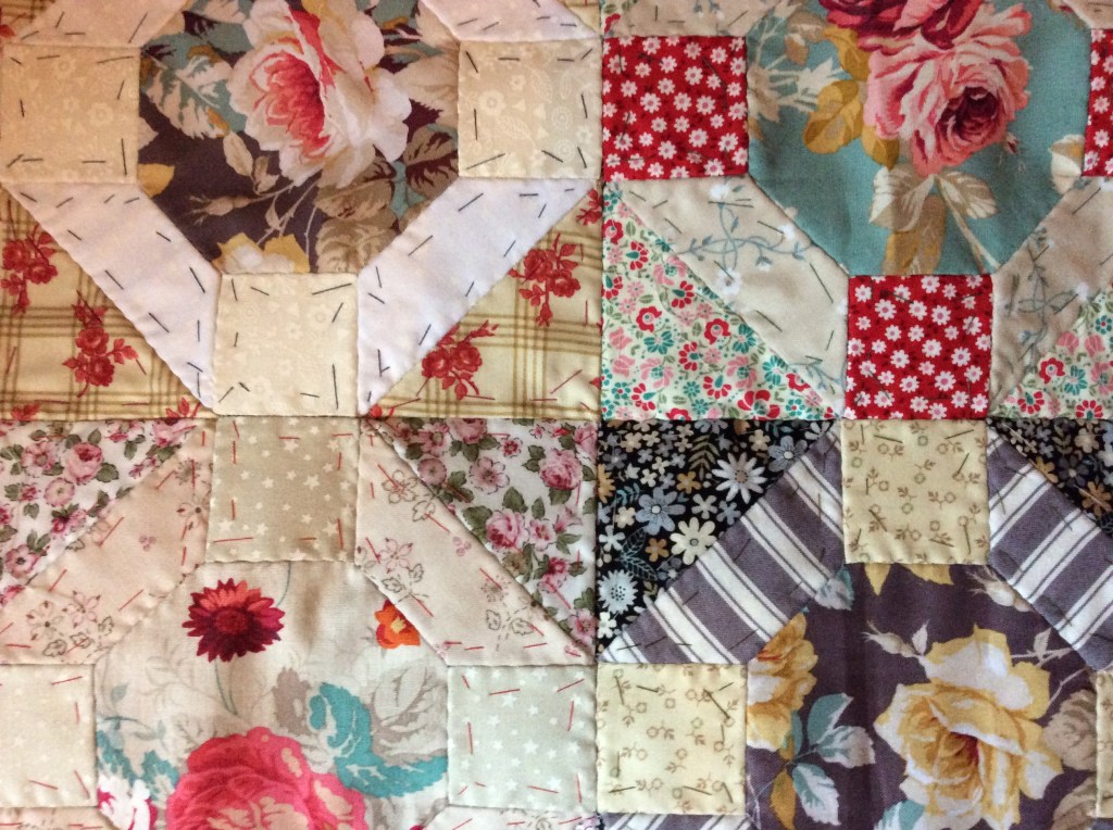 I have been busy in the cooler weather catching up on some sewing. I have sewn a little on the Pirate Quilt top, completing one corner quilted in a feather and crosshatch pattern and finished some rope design – time to move the hoop. I removed some quilting on the wave material and have decided to draw a wave design over the top. (No pictures of this)