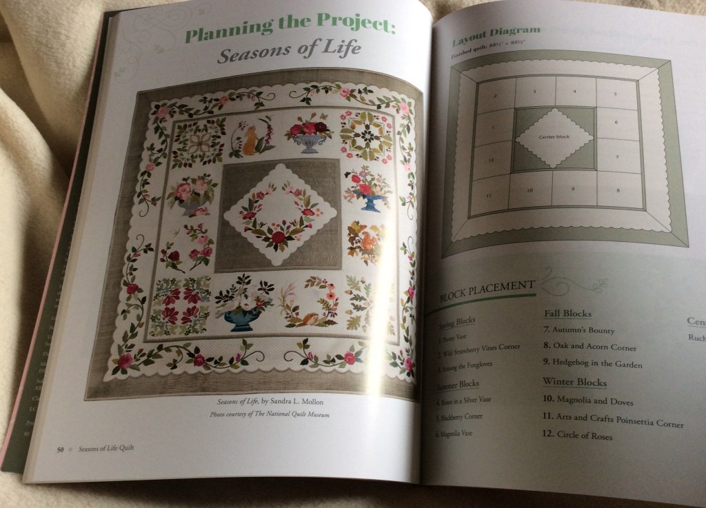 It was my Birthday on Wednesday and one of the presents I had requested was “The Season of Life Quilt” by Sandra L. Mollon. It looks like a very complex quilt with lots of applique, a task which I had set myself to learn. Take a look at some of the pictures from the book.