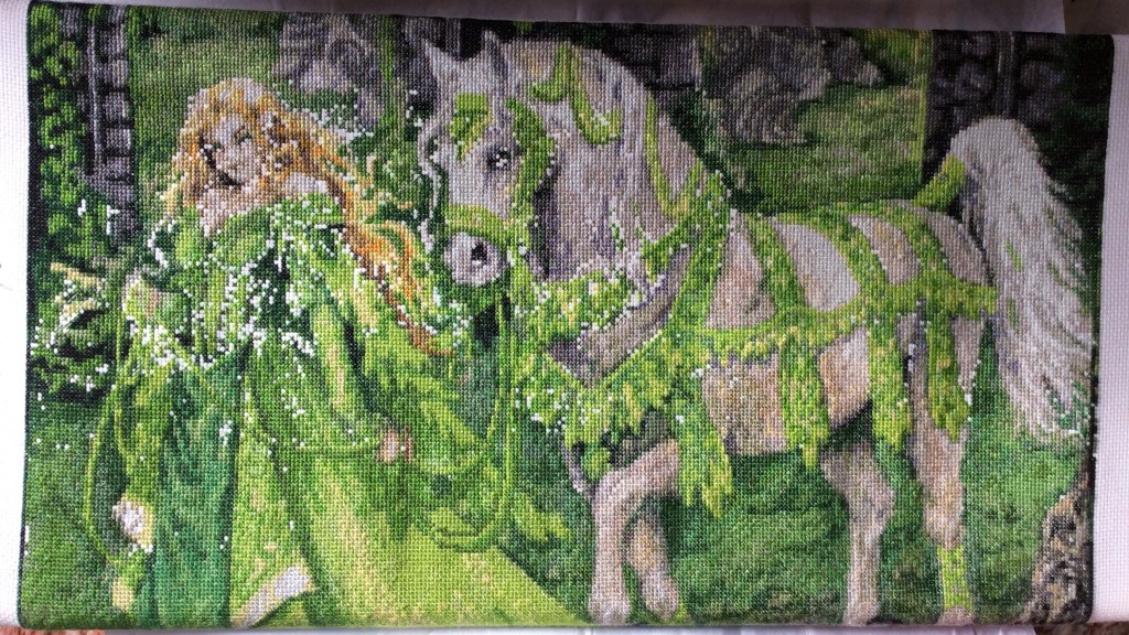 1. Bit by bit you are filling in all those white dots. I think this is the hardest part of stitching full coverage pieces like this, but it makes the picture all the more beautiful.