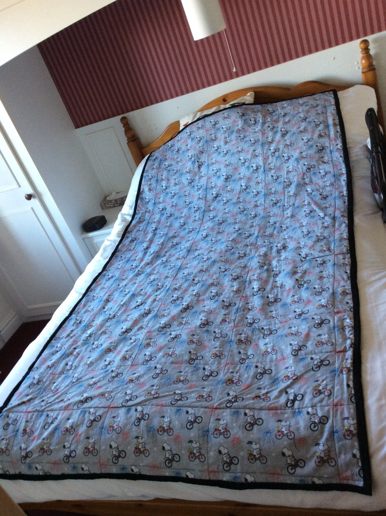 So I was rather pleased when I managed to complete the binding on the Snoopy Quilt whilst watching the England game on Saturday night ready for the cold snap.