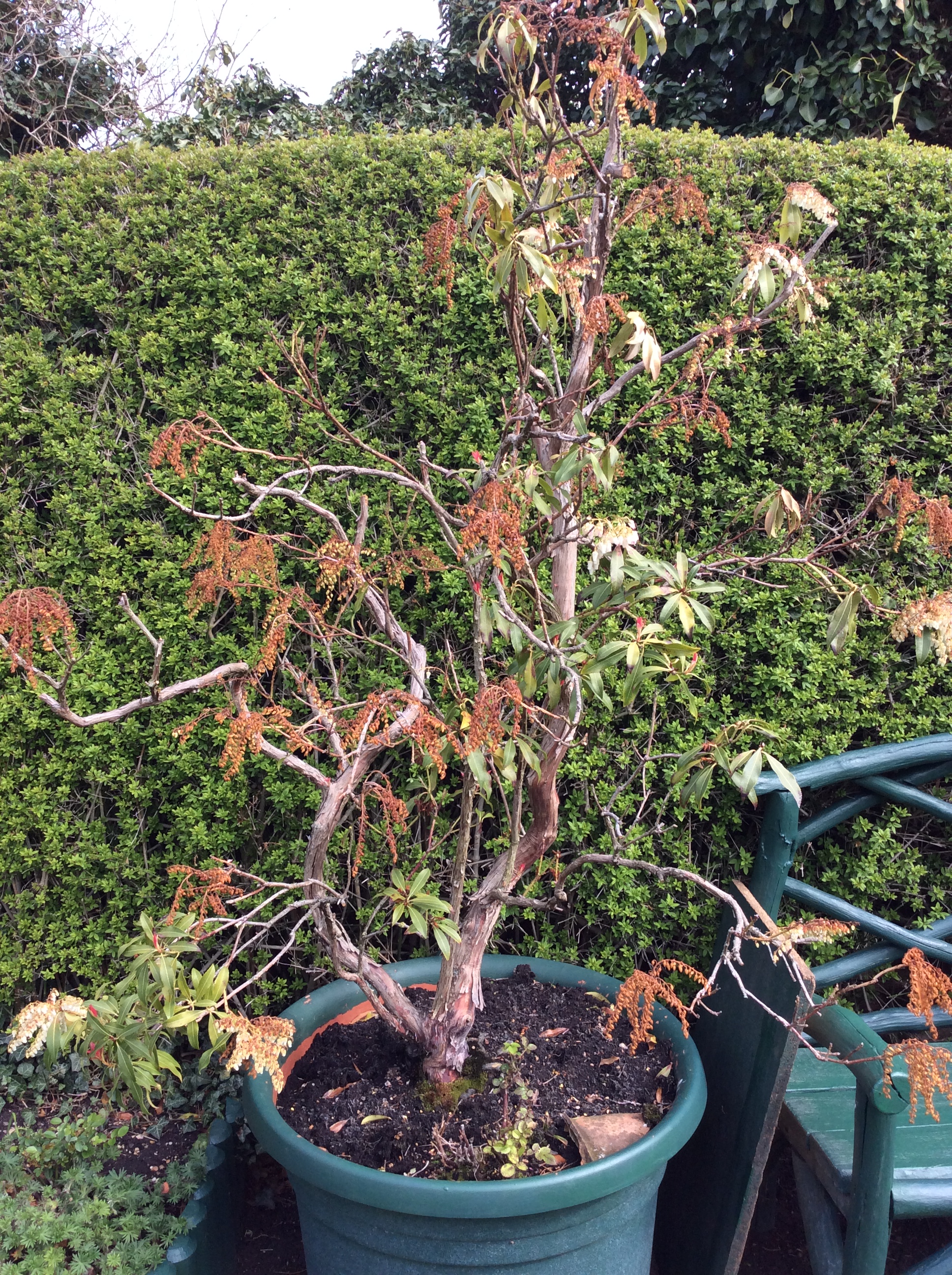 Another disaster was my beautiful and prized Pieris Forest Flame. Here is a before image