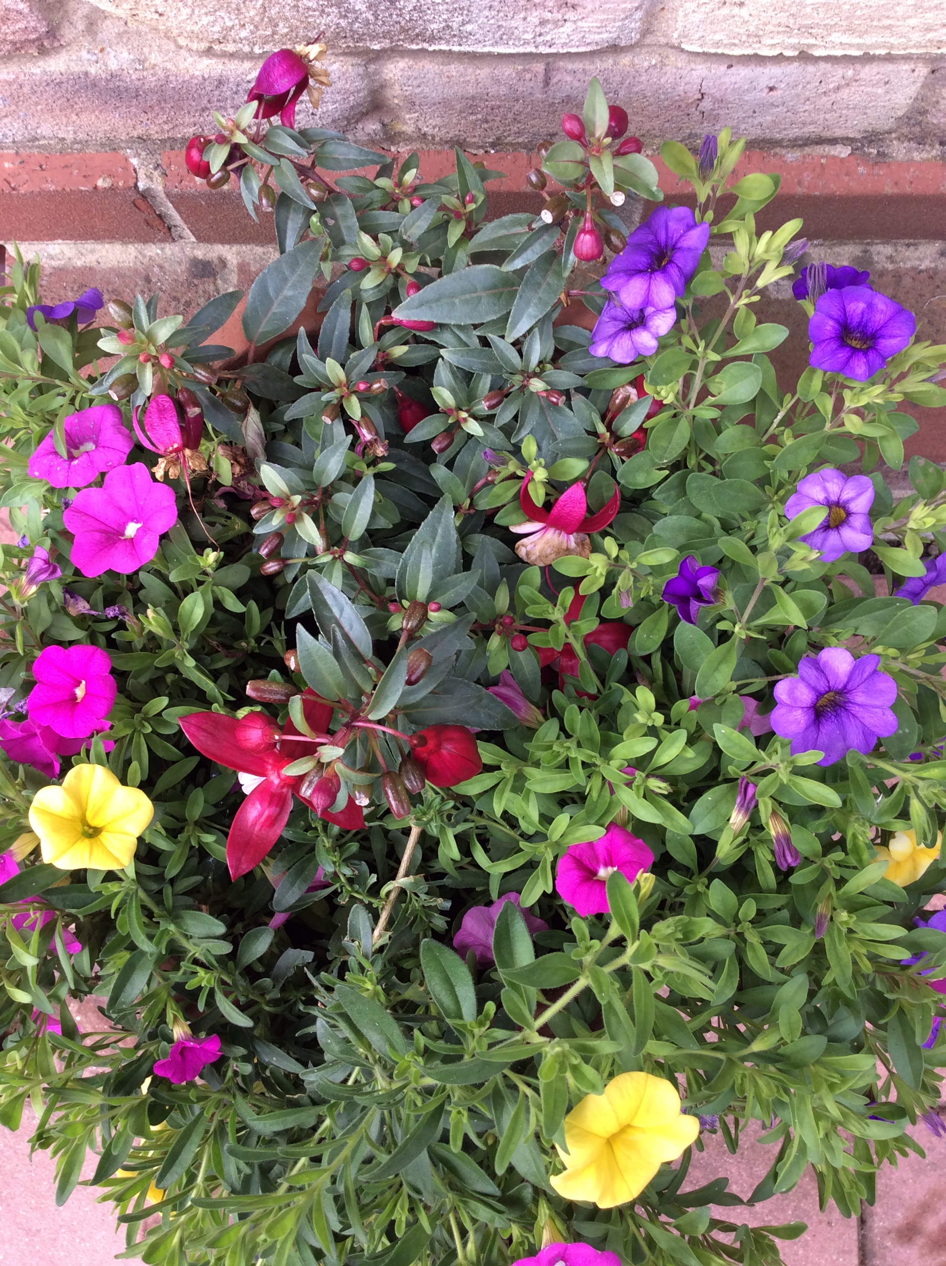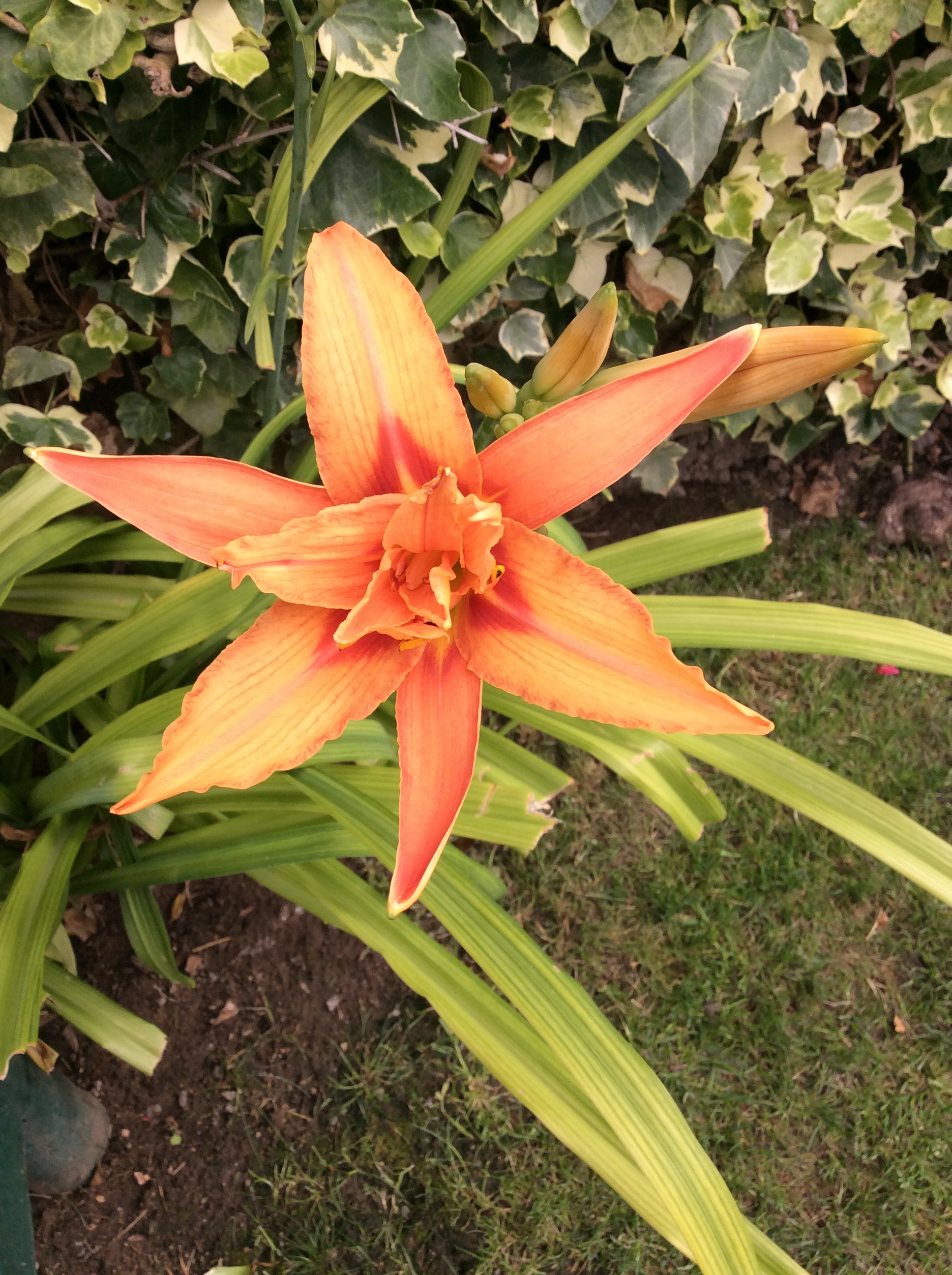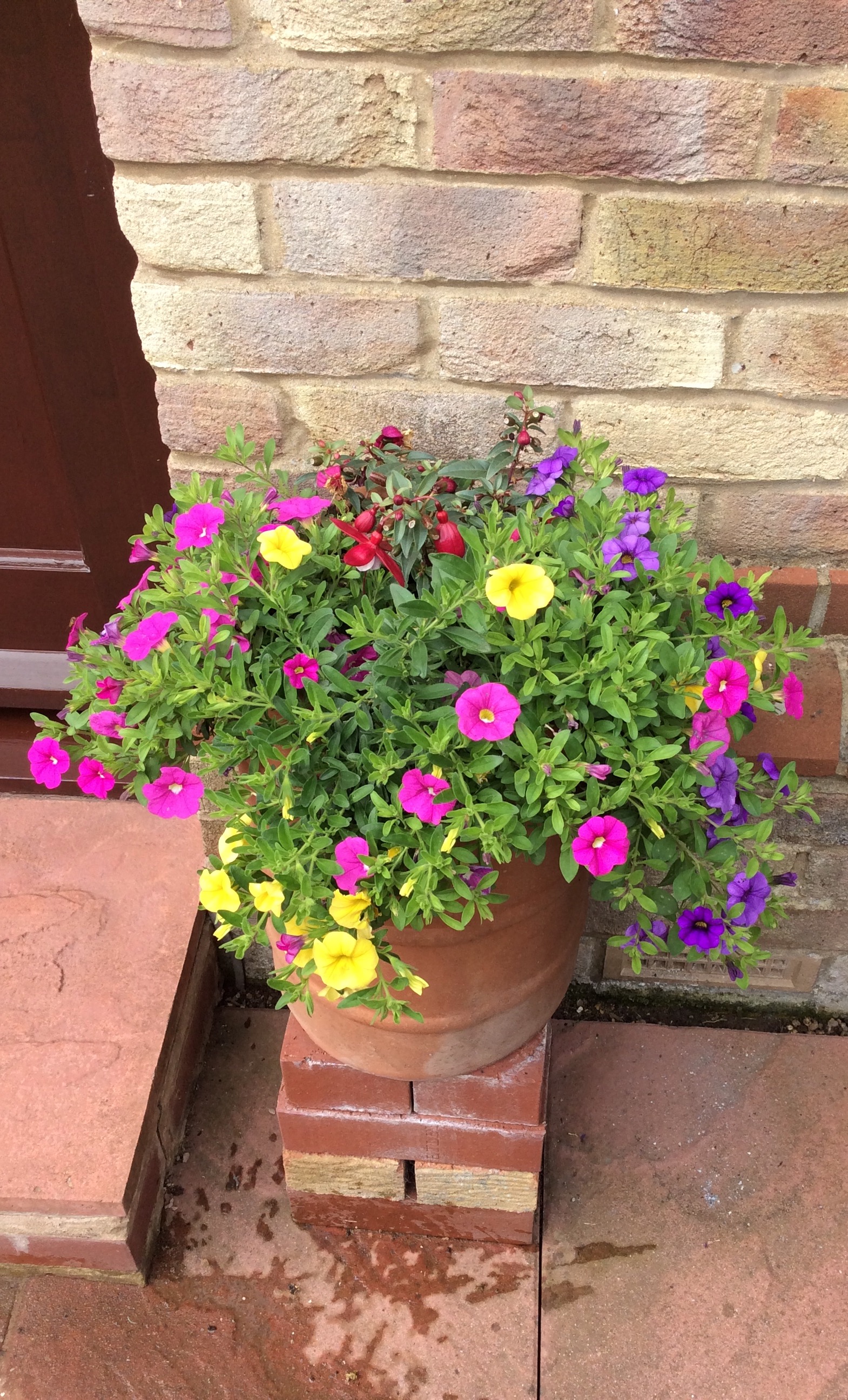 We have planted up a colourful flower garden this year. There are petunias, marigolds, lobelia, roses and dahlias which will bloom later. Also for the first time the lily plant by our wooden bench has flowered.