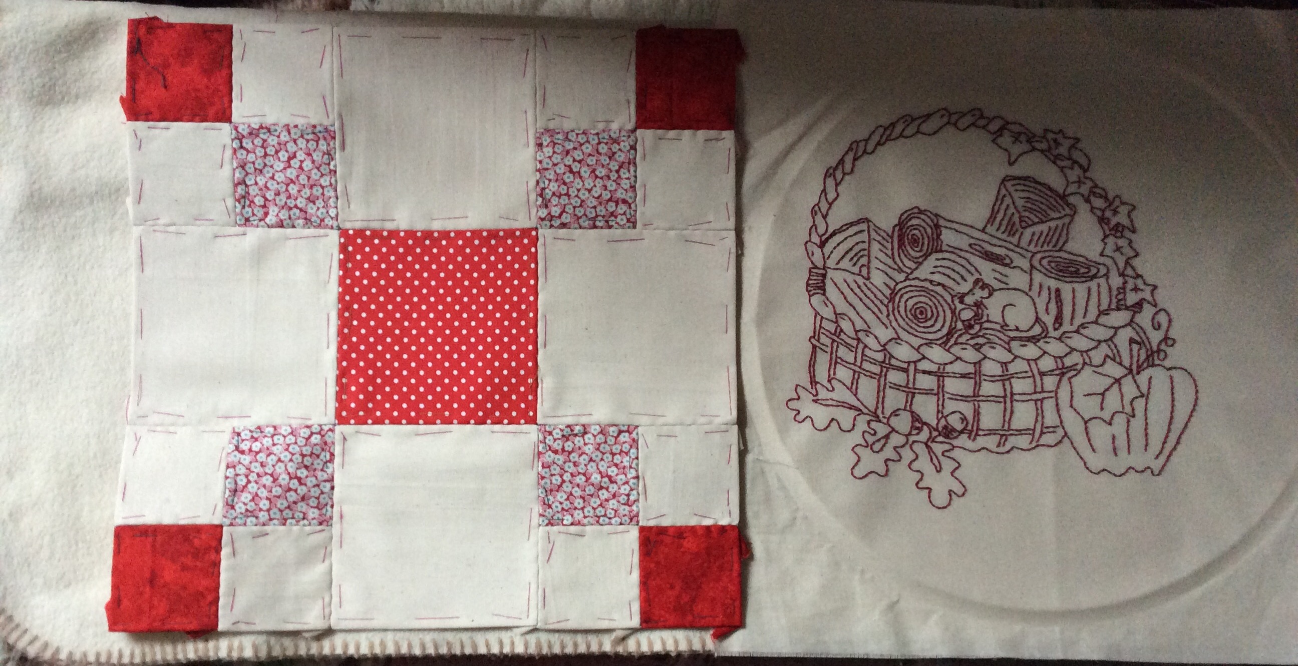 Redwork so far completed …… January Pieced Block and Redwork design, Completed February, March, April and May Pieced Blocks and started February Redwork Design. Lots left to do!