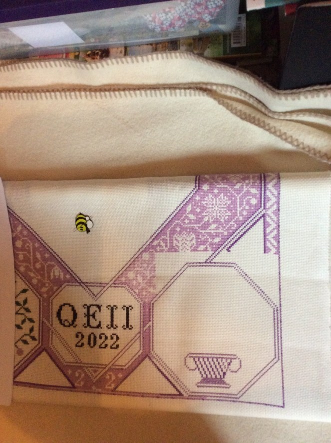 Hope all is well. I have done loads of stitching, particularly on my Fruit of Plenty. I had to work out the placement for the October Block as I have altered it from the actual design as this has now become a homage to the death of our Queen.