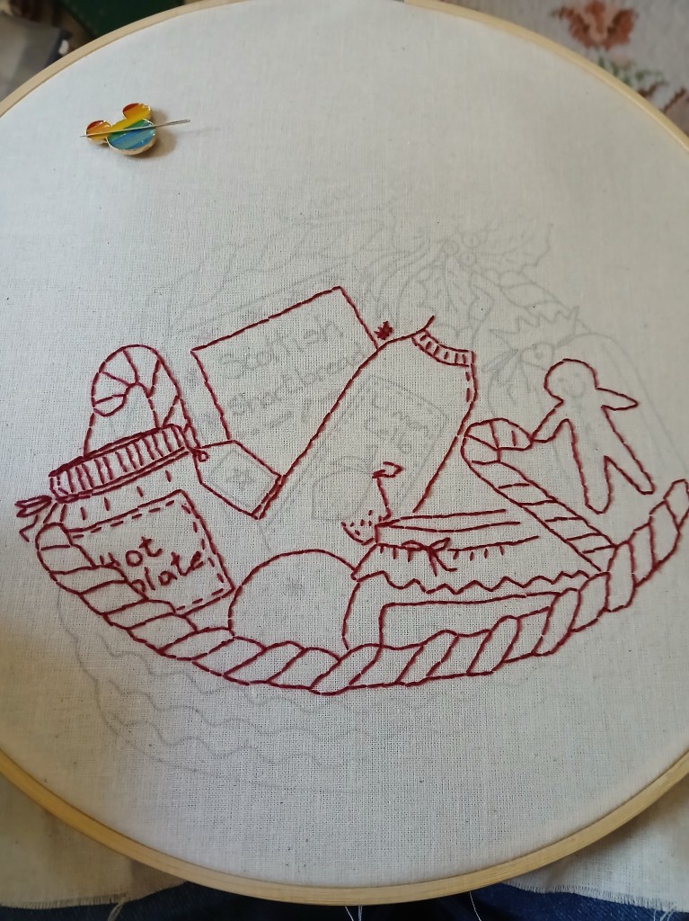 I have chosen not to put a circle around my red work Designs as not all are centred correctly and a circle I think would highlight that fact. Anyhow that’s me so please look at the other members projects.