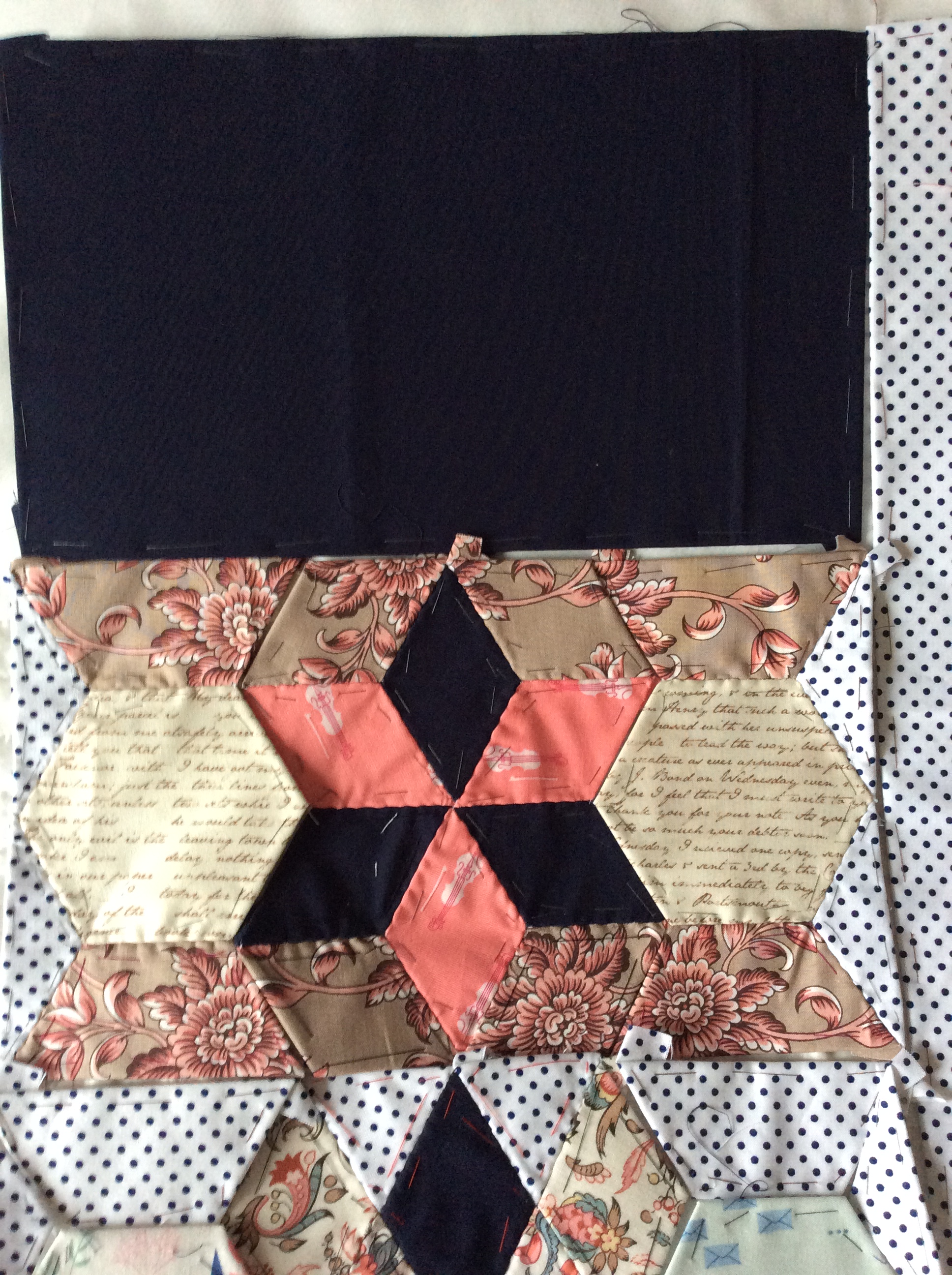 My next project is “The Honey Bee Quilt” – which you may remember (or not), and is already started. The material is by Gail Pan for Henry Glass & Co.