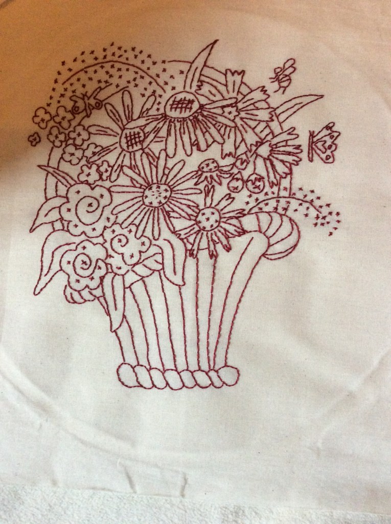 Today is another little mini dance as I have finished the May Basket to my Redwork Basket Quilt by Mandy Shaw of Dandelion Designs.