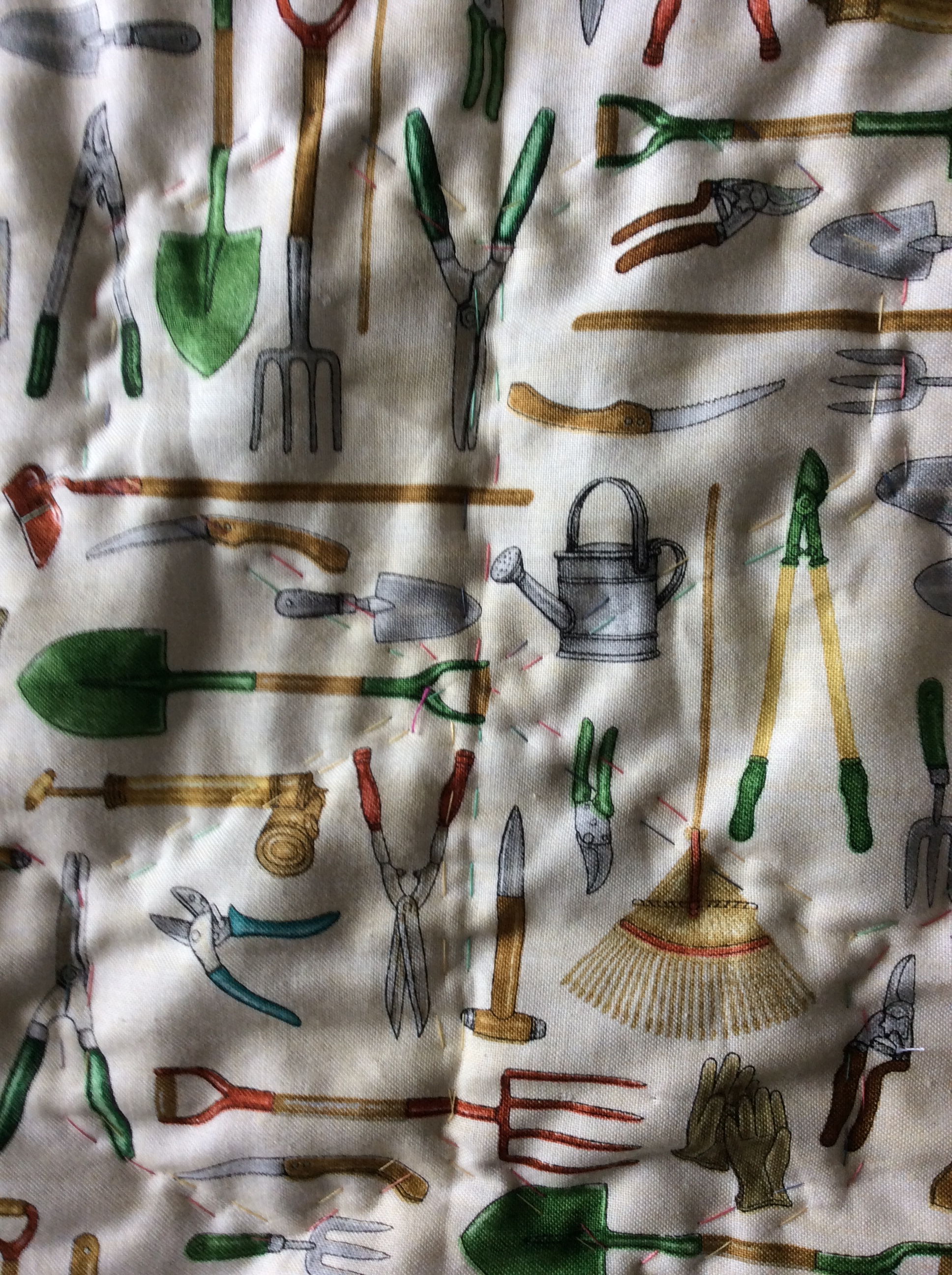 Three lap quilts were started and completed last year. The first was my William Morris Quilt which was a strip pieced quilt using the tube method (as demonstrated by Kate on the Last Homely House You tube channel.) The second was a lap quilt for my mum (to cheer her up). The third was a quilt for my Sister-in- Law who loves gardening, so her quilt featured plants and gardening tools.