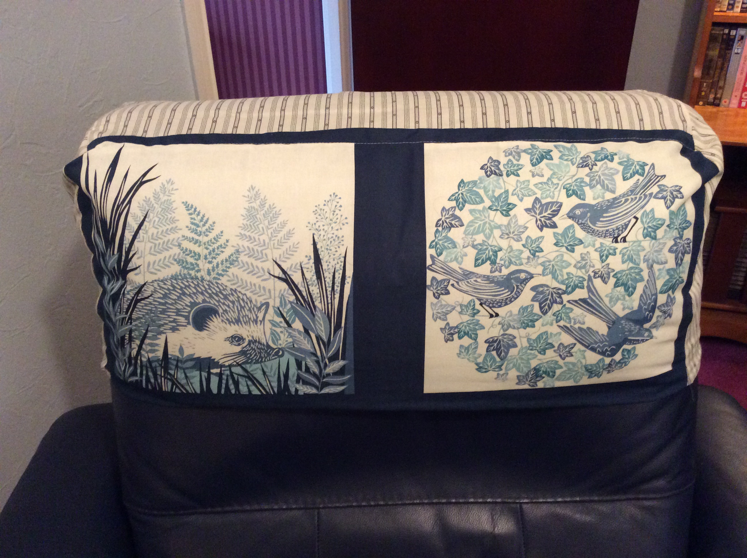 I also made my Husband a cover for his chair as a cushion behind his head was making his neck ache (angle felt wrong). I had to quickly judge the measurements so no judging about wrinkles on curve